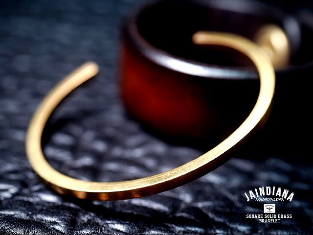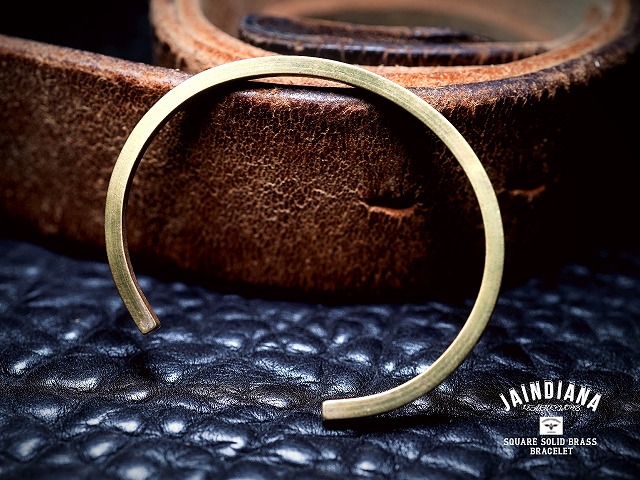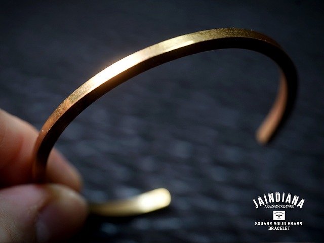 3ミリ厚の真鍮角棒を使用し製作したソリッドブラススクエアバングル。真鍮無垢のビンテージ感ある風合いと、さり気ない武骨な素材感が癖になる、バイカースタイルにもカジュアルスタイルにもマッチする真鍮バングル。