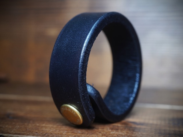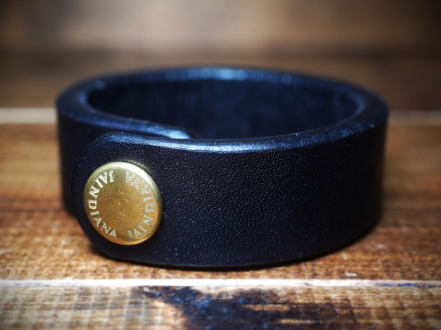 超極厚6oのブラックサドルレザーを使用して製作したレザーブレスレット。シンプルな革造形でありながら、牛革本来の圧倒的な存在感を120パーセント味わえる、究極のサドルレザーブレスレット。