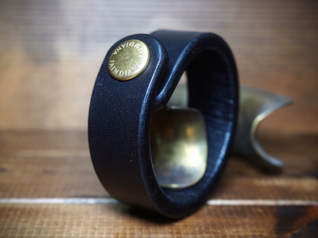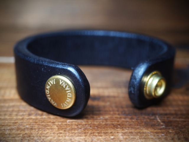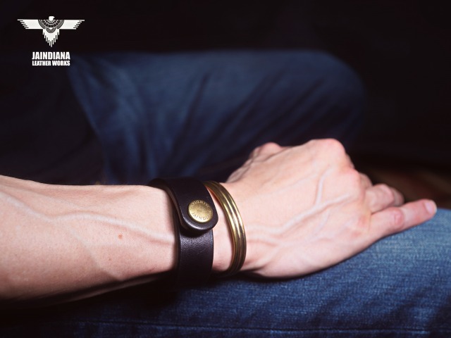 重厚感あるサドルレザーブレスレットは真鍮バングルとの相性が抜群です。