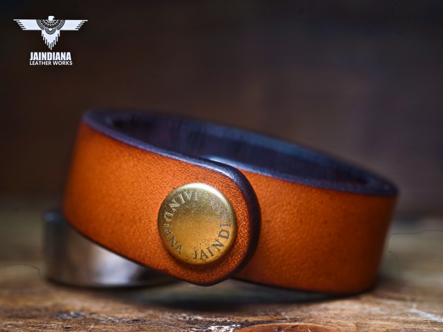 手染めで丁寧にビンテージ感あるエネルギッシュなライトブラウンに仕上げ、新たな存在性へと昇華したサドルレザーブレスレット。