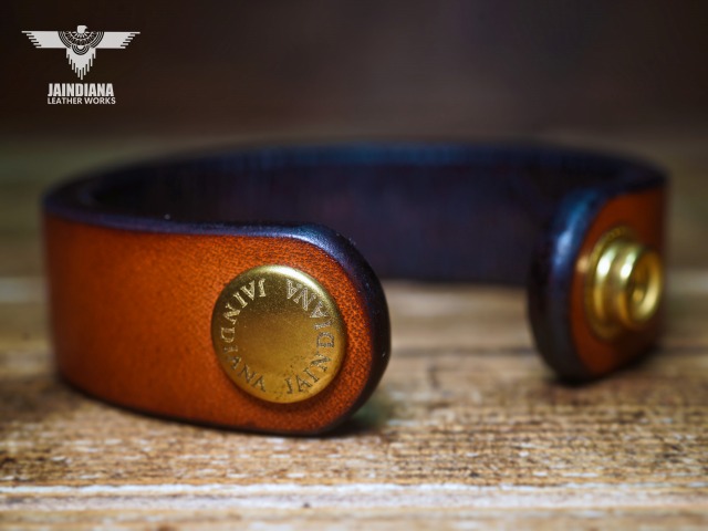 ビンテージ感ある手染めのサドルレザーブレスレットは真鍮バングルとの相性が抜群です。