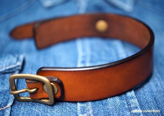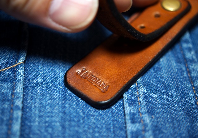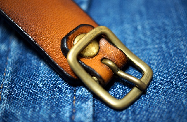 カシメ金具、バックル共に真鍮無垢製を使用しています。