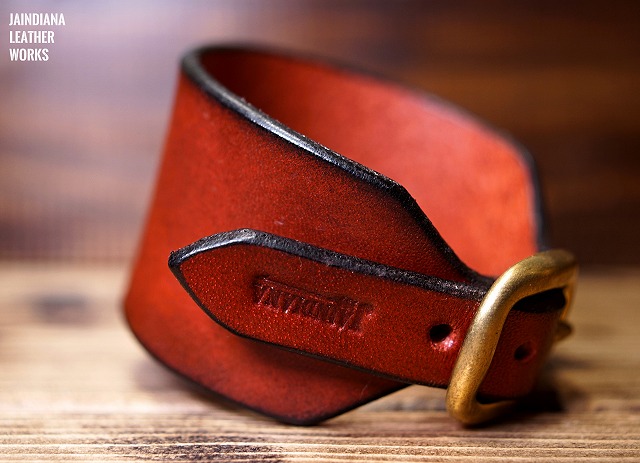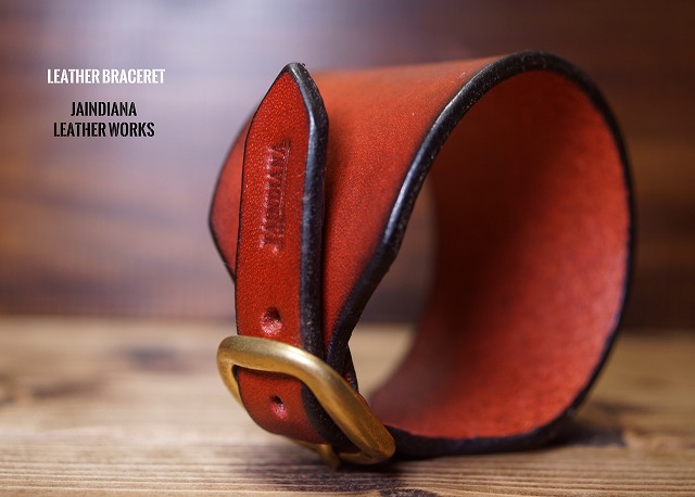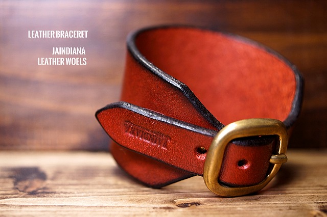 手染めによりエネルギッシュでビンテージ感あるバーガンディーに染め上げたサドルレザーブレスレット。一枚革のスタイリッシュなデザインがファッション性を高める、ロックなレザーブレスレット。