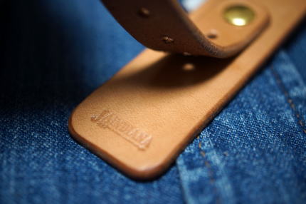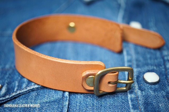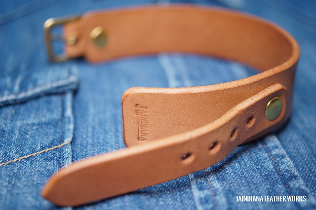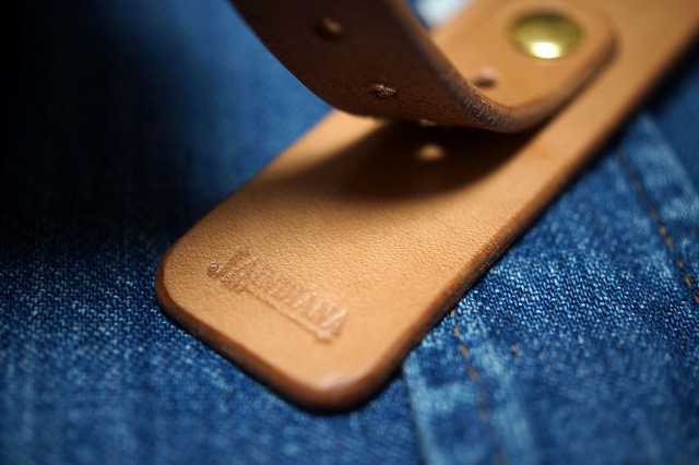 カシメ金具、バックル共に真鍮無垢製を使用しています。