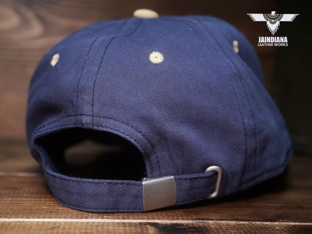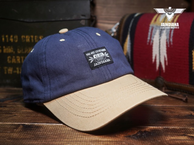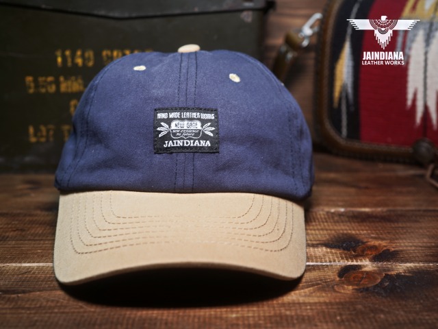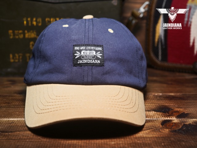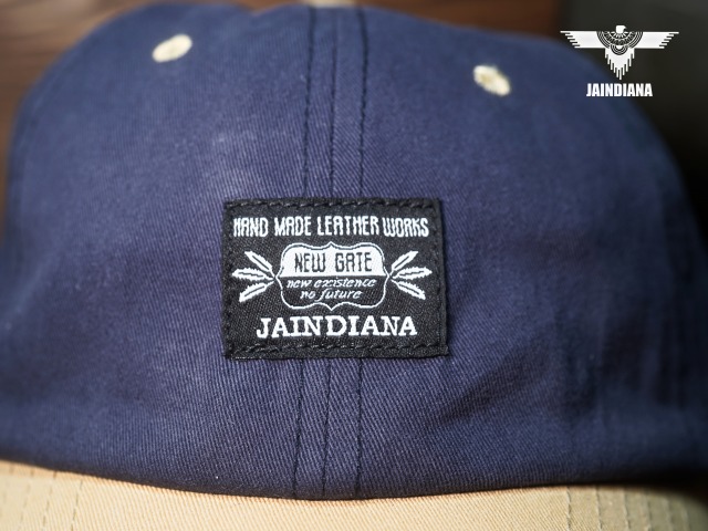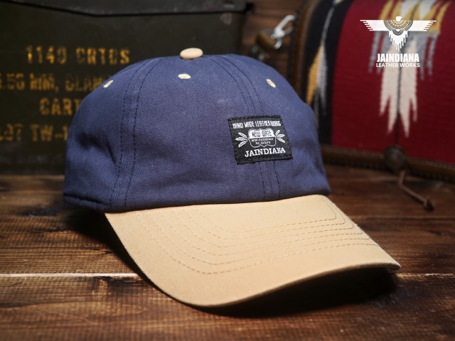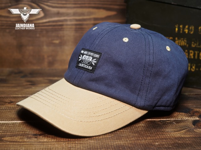 フロントにJAINDIANAのオリジナルタグをを配置したツイルキャップ。ネイビーとサンドベージュのツートーンカラーのお洒落なデザインが、日常にナチュラルに溶け込むコットンキャップ。