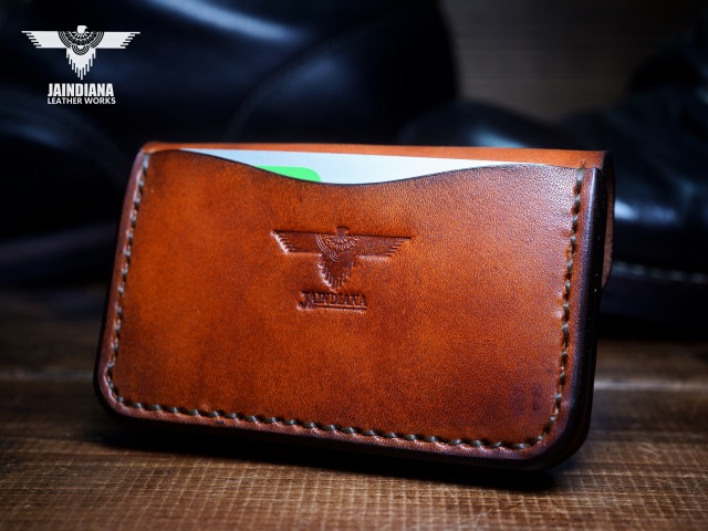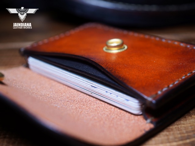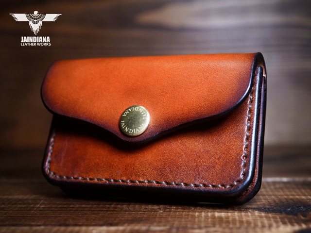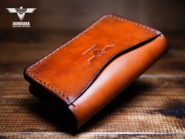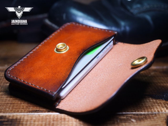 手染めにより、ビンテージライトブラウンに染め上げたサドルレザーカードケース。