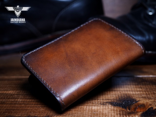 ワイルドなビンテージ感ある魅力を放つ絶妙なブラウンに染め上げたサドルレザーのカードケース。手縫いで仕立て上げられたハンドメイドの温かさを存分に味わえるサドルレザーカードケース。