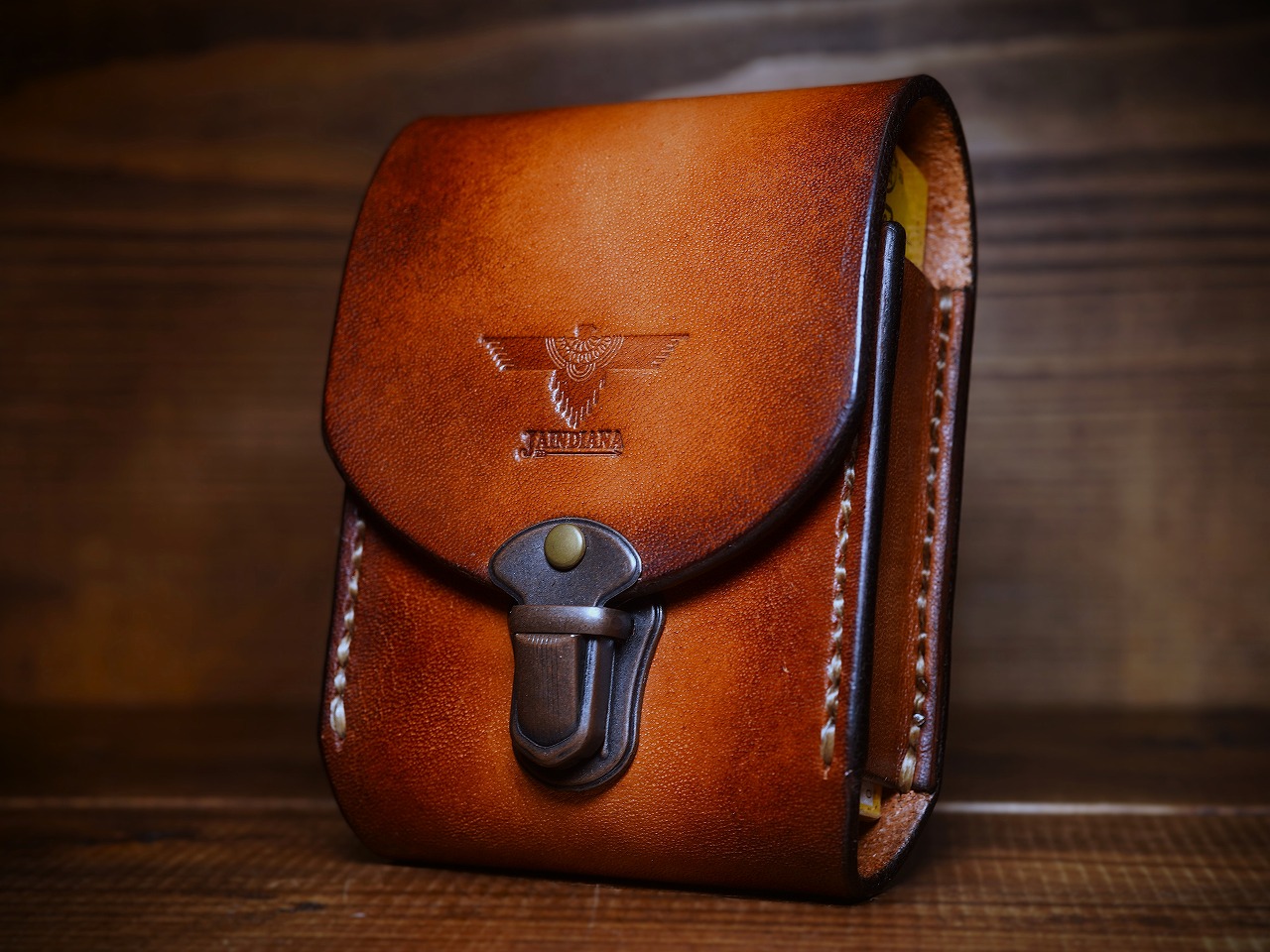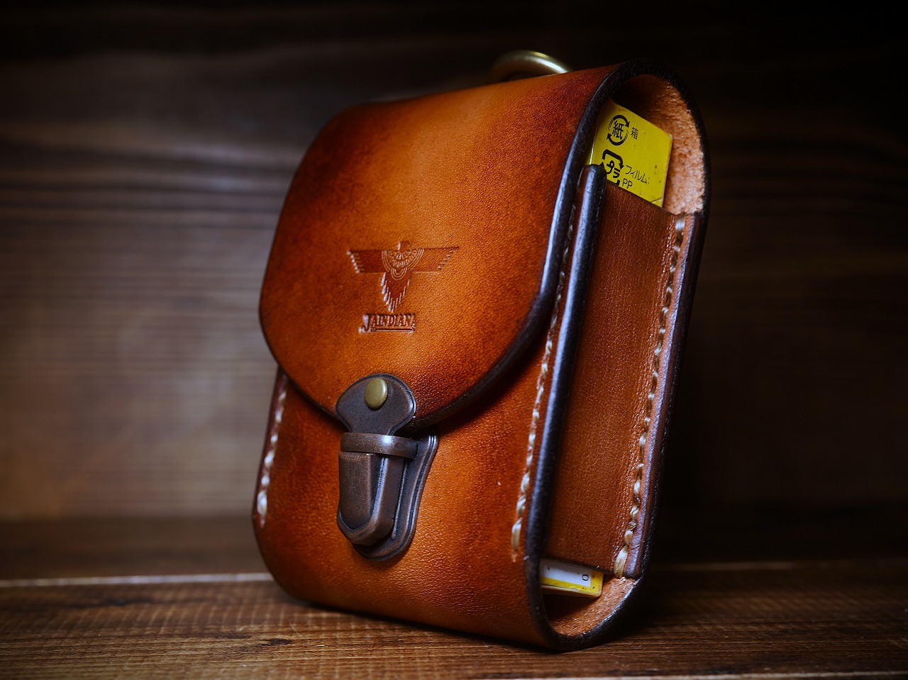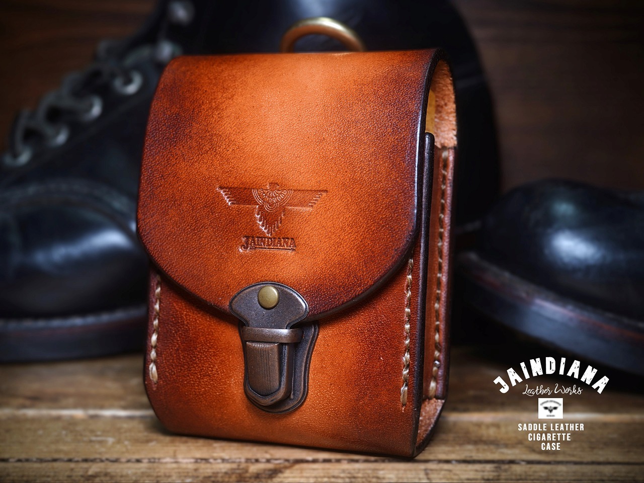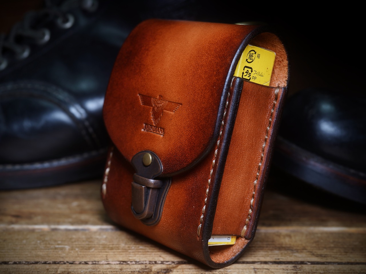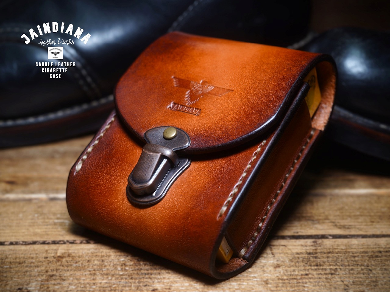 上蓋中央にはJAINDIANAオリジナルのイーグルの刻印が施され、ビンテージ感あるサドルレザーにネイティブな魅力をプラスし、唯一無二の存在感を放つレザー煙草ケース。