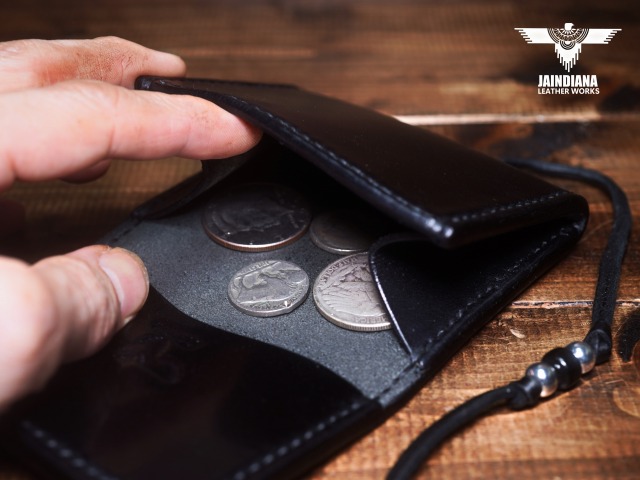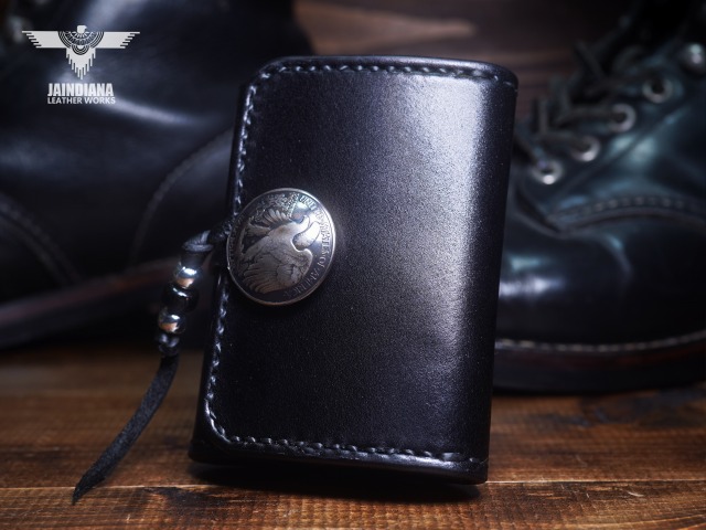 深みのあるシックなブラックカラーにきめ細やかな美しい艶が光るコードバンレザーが、気品と高級感を放つコインケース。コンチョにはシルバーイーグルコインコンチョを使用し重厚感を増した、使う者に寄り添う小銭入れ。