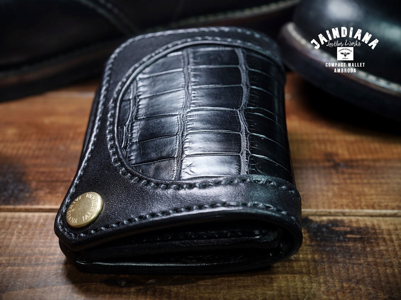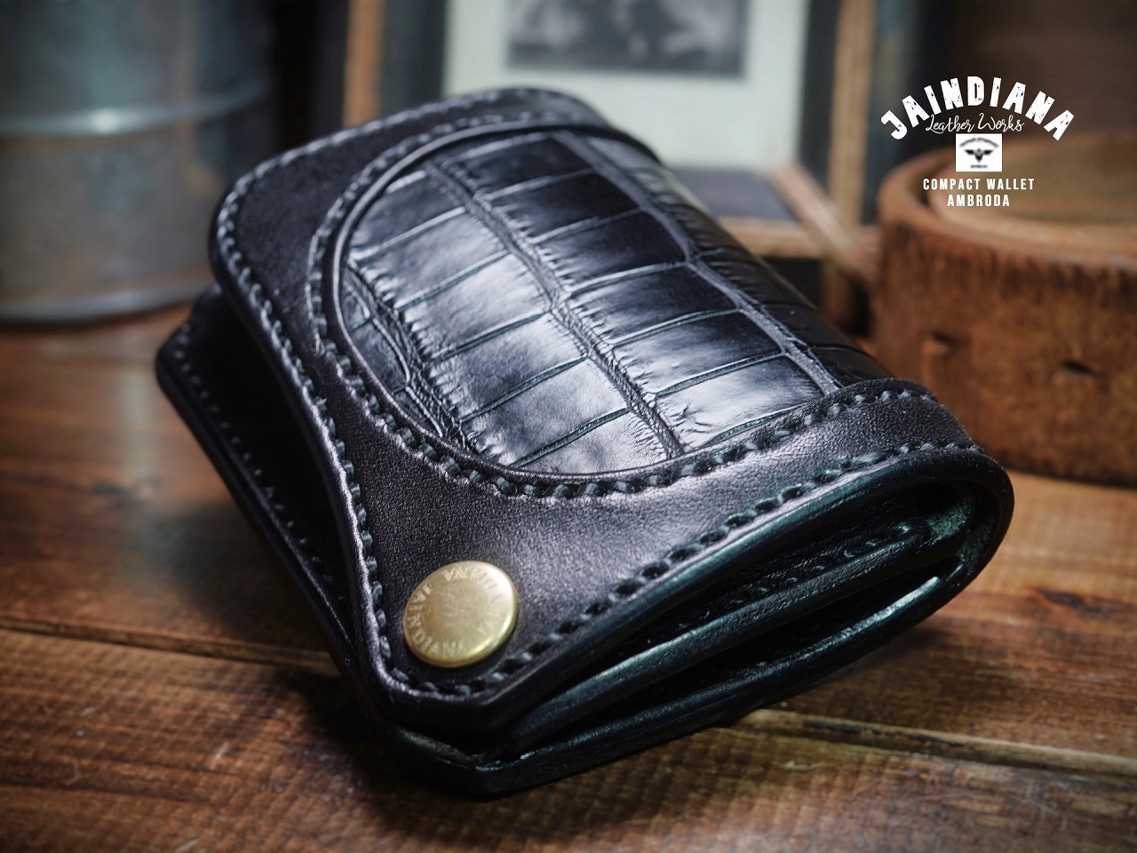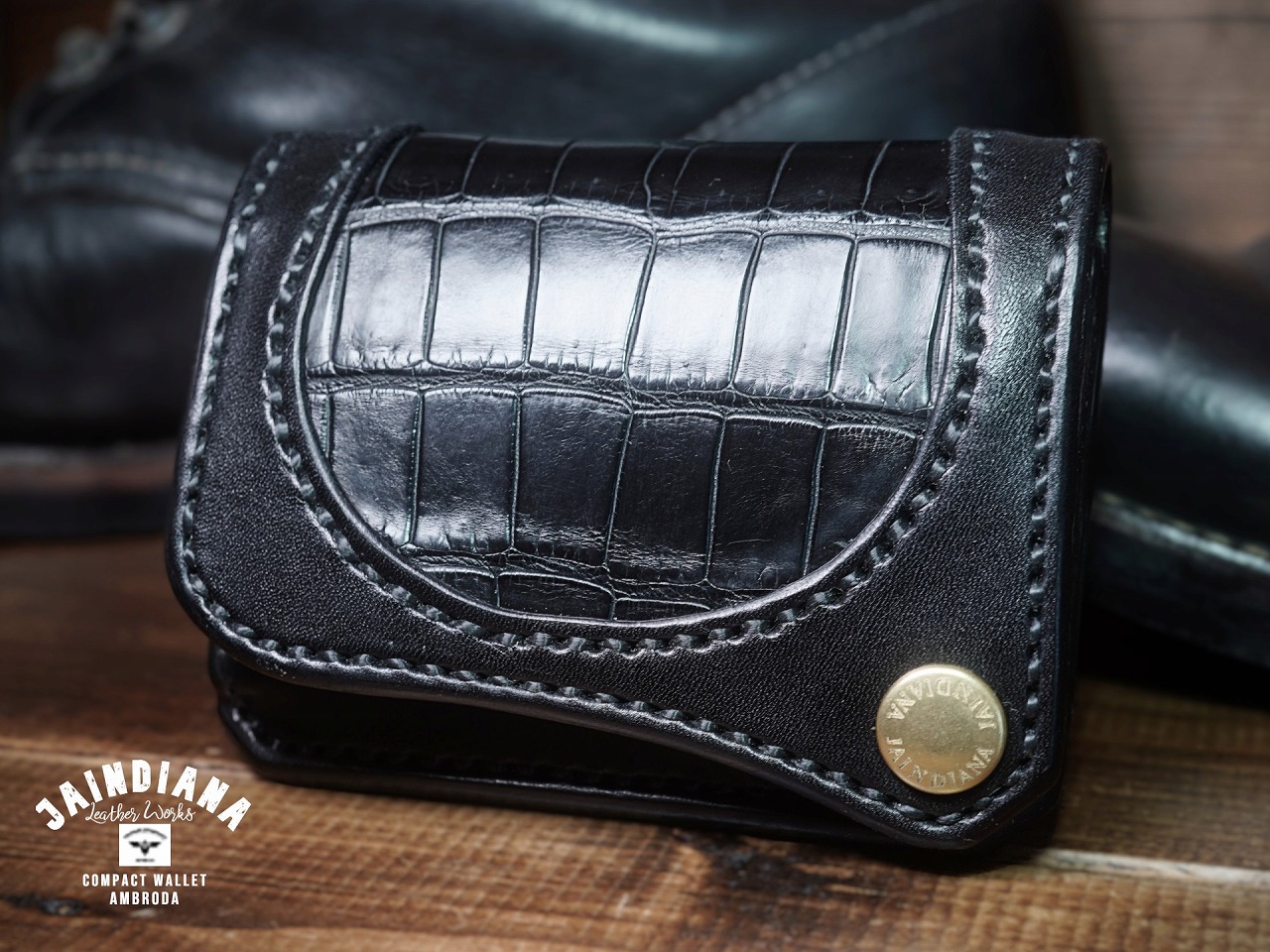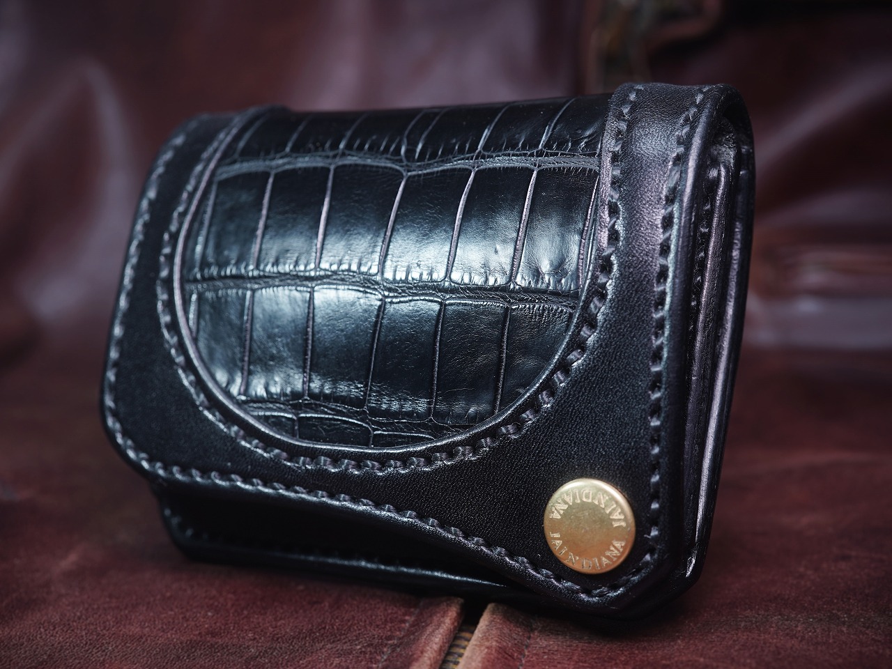重厚感あるブラックのクロコダイル(鰐革)をコンパクトサイズに落とし込んだウォレット。唯一無二の神秘的で生命力溢れるクロコダイルを屈強な手縫いで構築した、デザイン性と使い易さを兼ね備えたコンパクトウォレット。