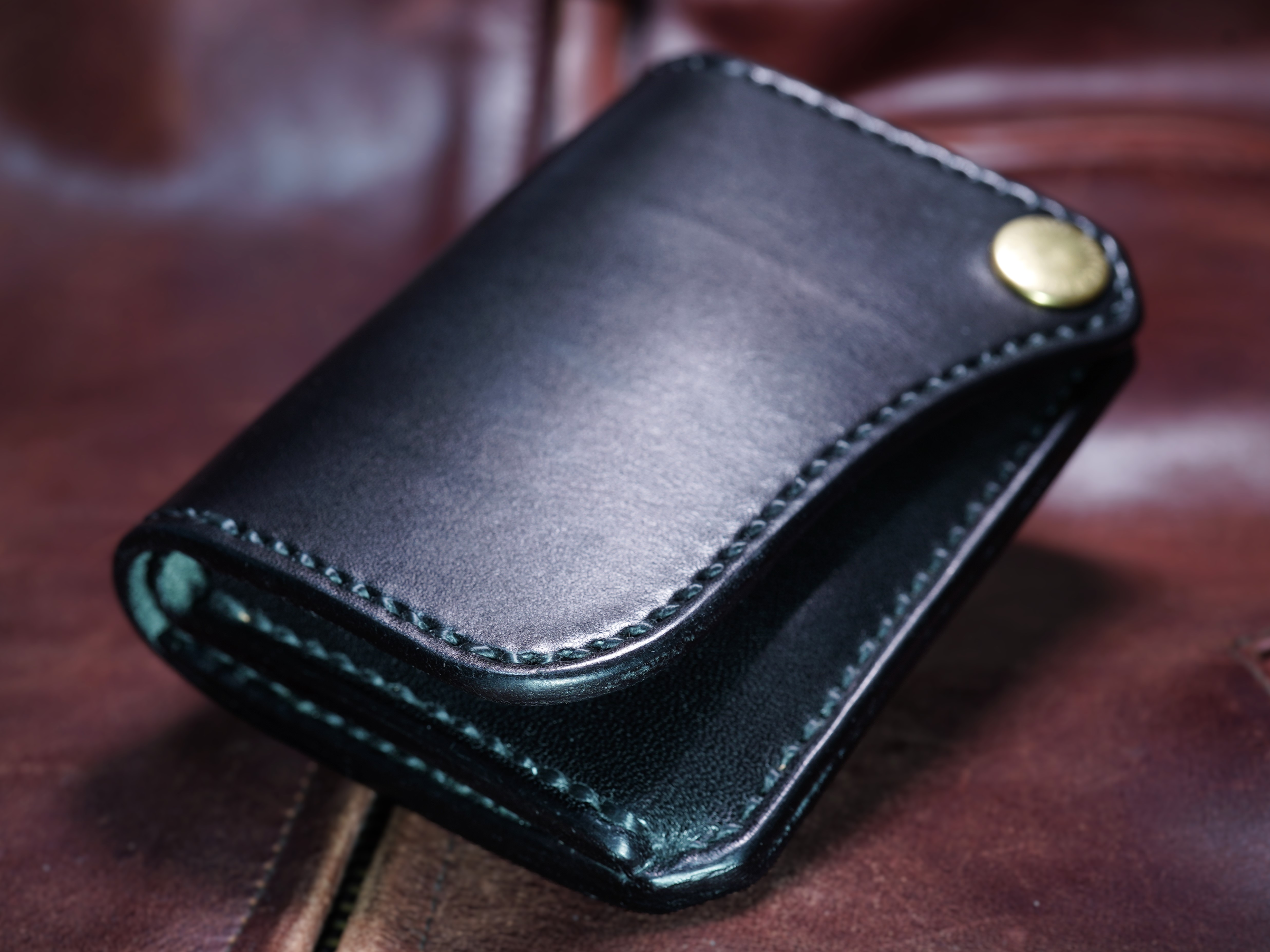 芯通しで丁寧に染め付けられた上質な栃木レザー。究極の色も言える黒。ブラックサドルレザーの不変の魅力が日常に確かさをもたらすサドルレザーコンパクトウォレット。