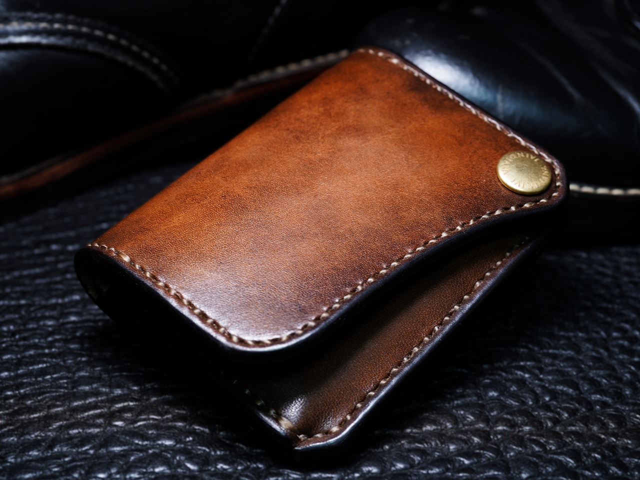 コンパクトで独創的クールなフォルムを手縫いで構築したサドルレザーウォレット。