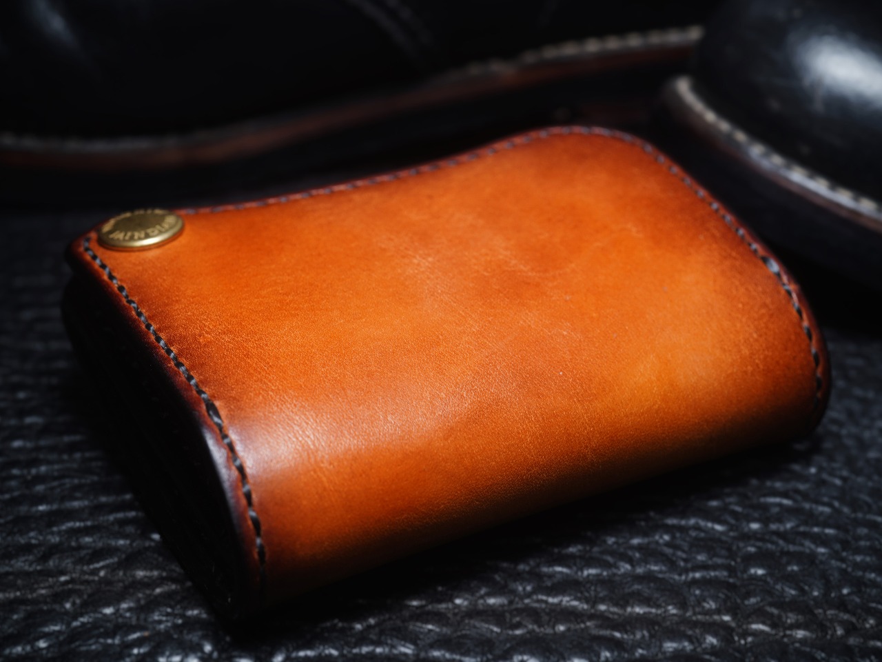 コンパクトで独創的クールなフォルムを手縫いで構築したサドルレザーウォレット。