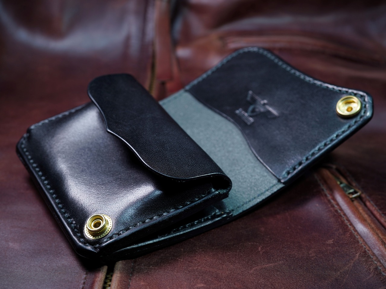 革と手縫いの相性は抜群で、財布として構成された革を骨のように屈強にささえ、血液のように脈々とウォレットラインを流れます。