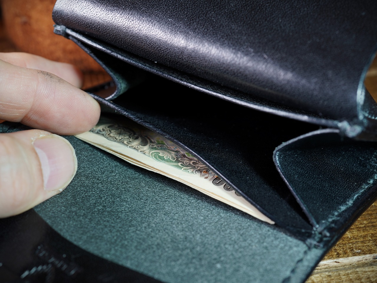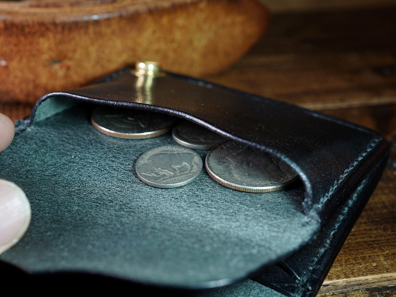 小銭いれ部は、フロントレザーの間口を広げてありますのでスムーズなコインの出し入れが可能です。