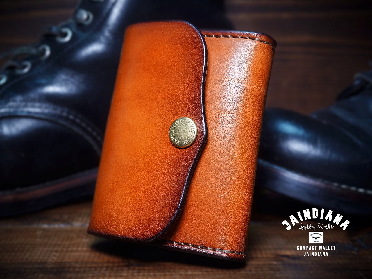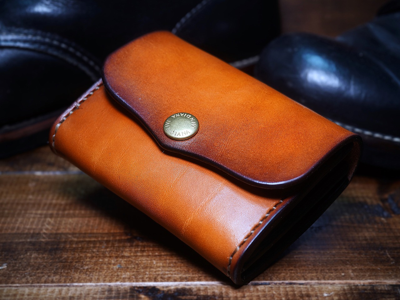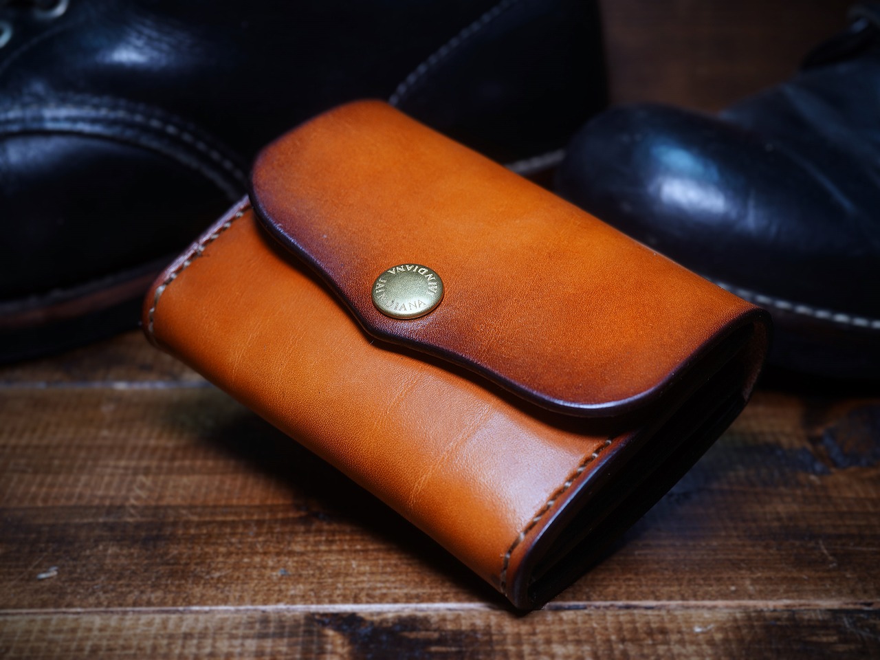 手染めによりビンテージ感あるライトブラウンに染め上げられたサドルレザーが、渋みの中にエネルギッシュな野生を放つコンパクトウォレット。CPWシリーズよりも一回り小さくコンパクトさを増したコンパクトウォレット。
