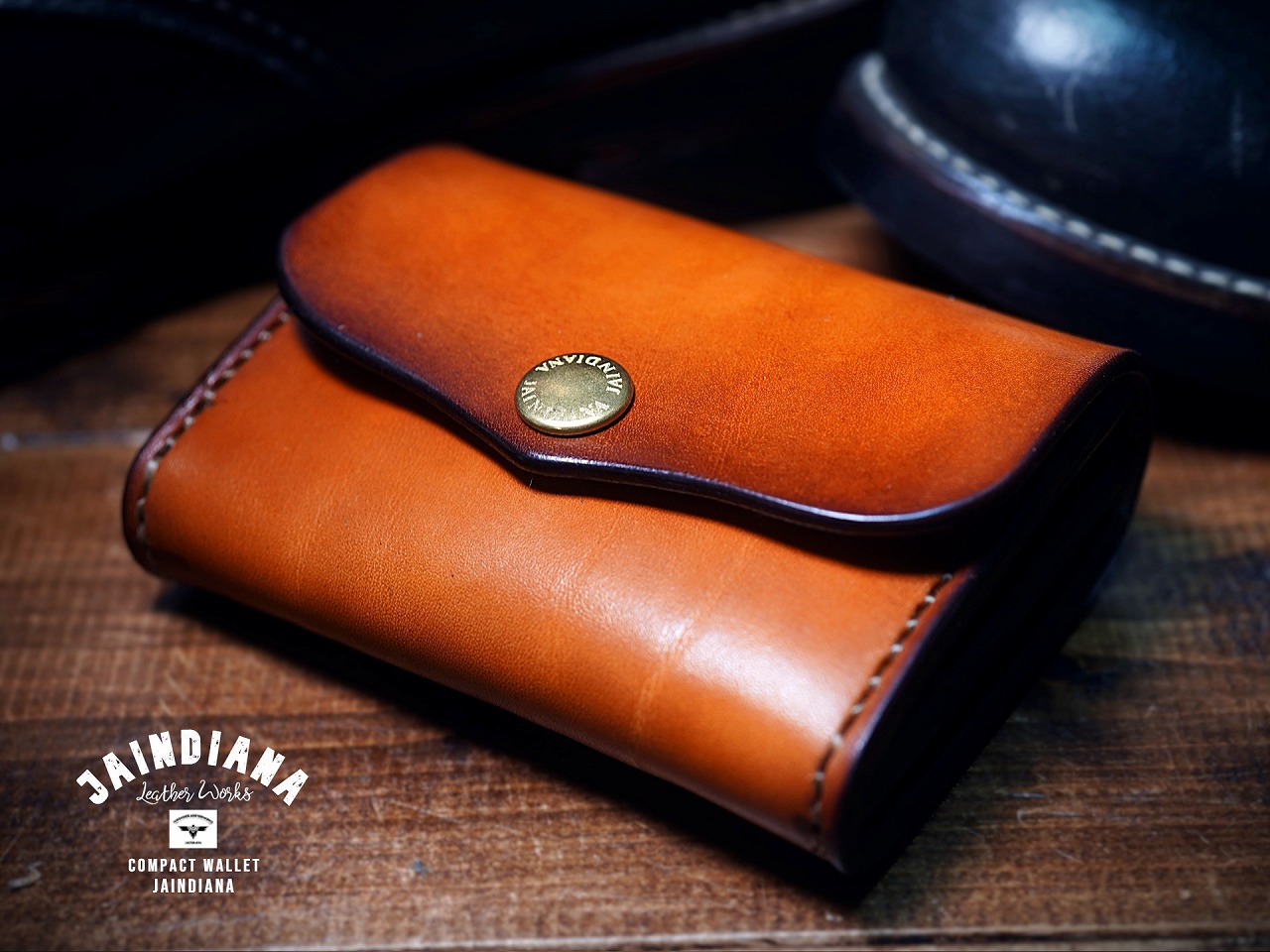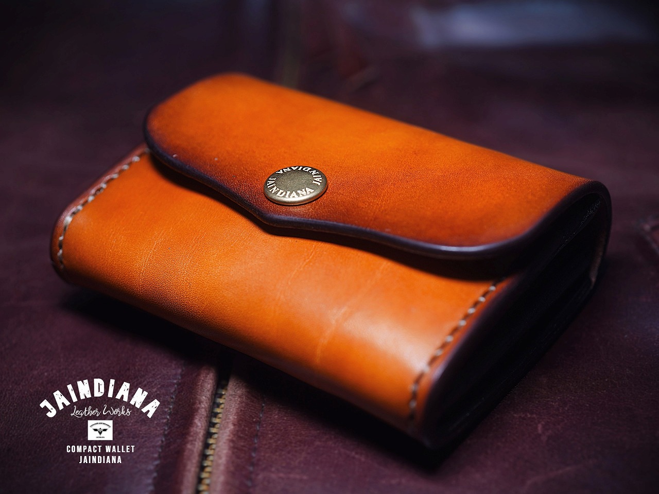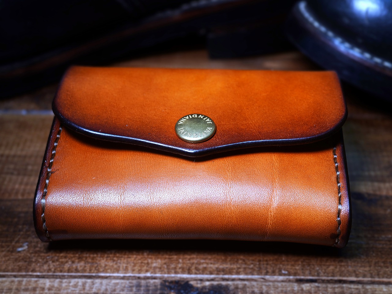 手染めによりビンテージ感あるライトブラウンに染め上げられたサドルレザーが、渋みの中にエネルギッシュな野生を放つコンパクトウォレット。CPWシリーズよりも一回り小さくコンパクトさを増したコンパクトウォレット。