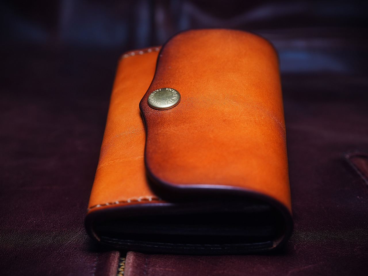革と手縫いの相性は抜群で、財布として構成された革を骨のように屈強にささえ、血液のように脈々とウォレットラインを流れます。