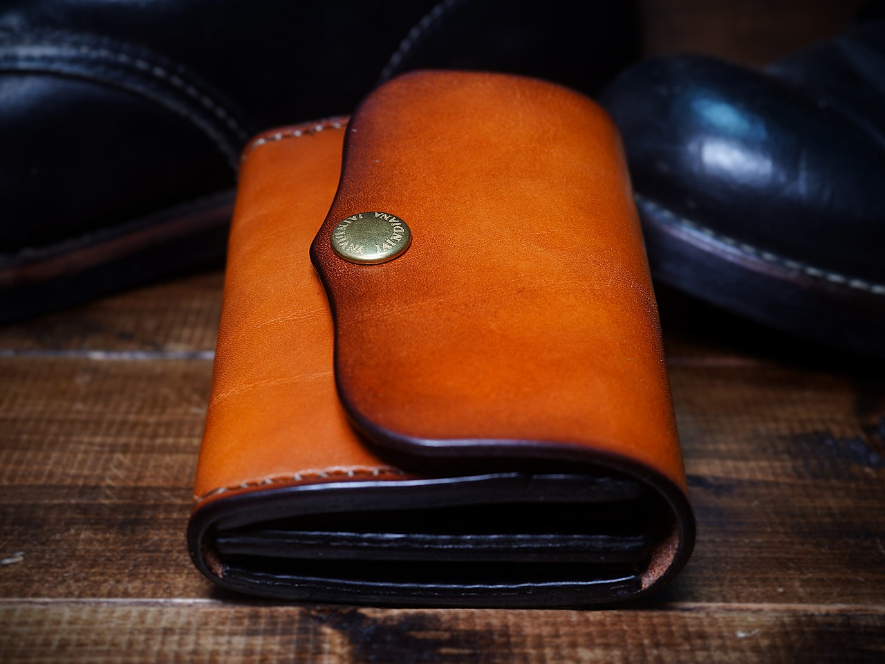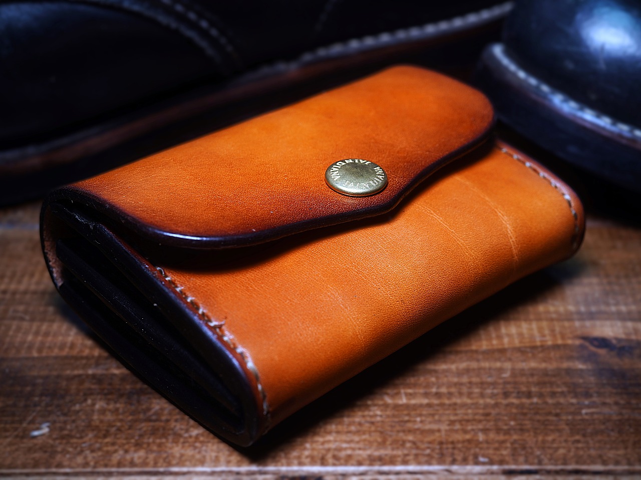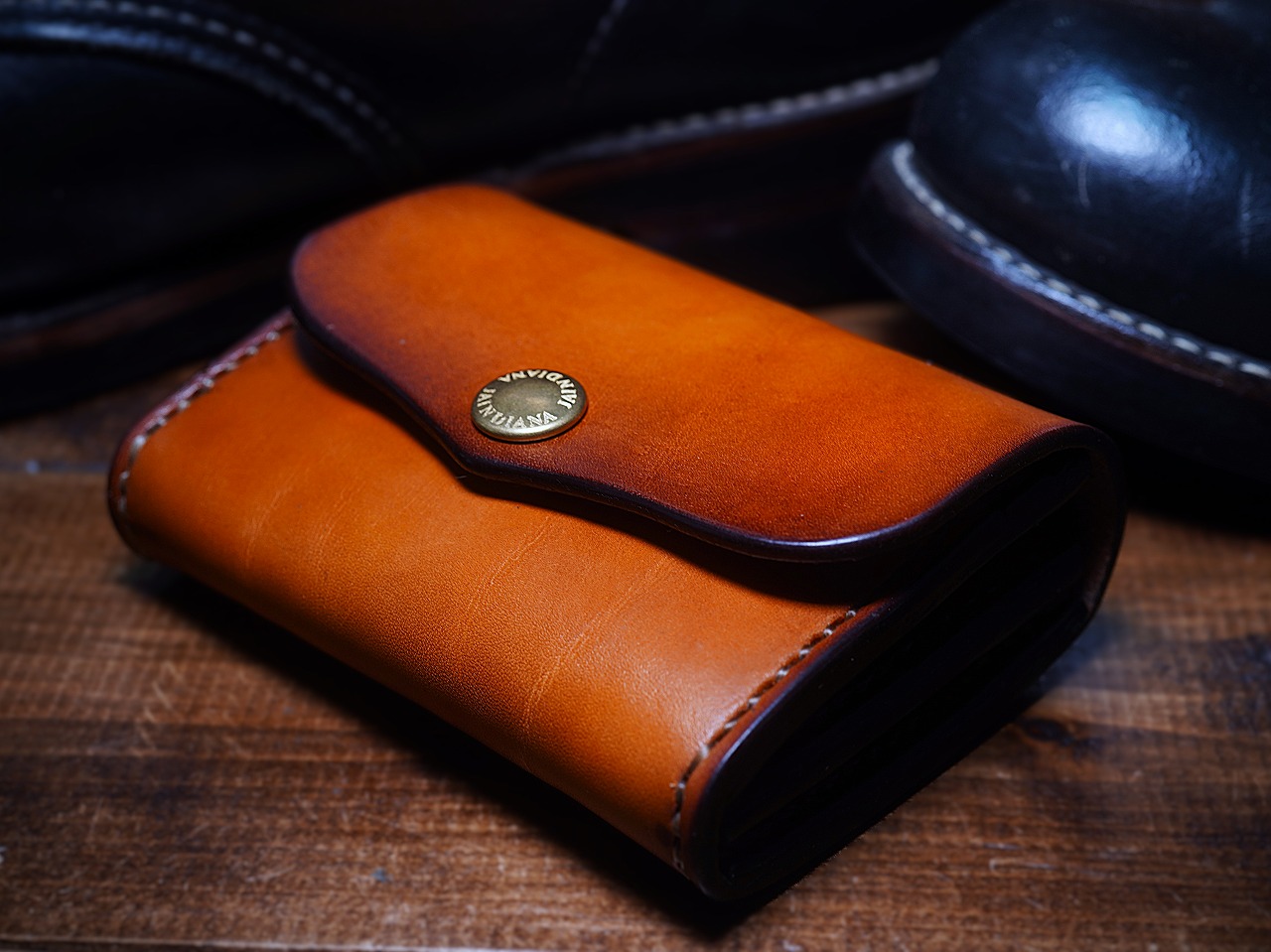 コンパクトサイズながら骨太な重厚感を放つ、手縫いのサドルレザーウォレット。