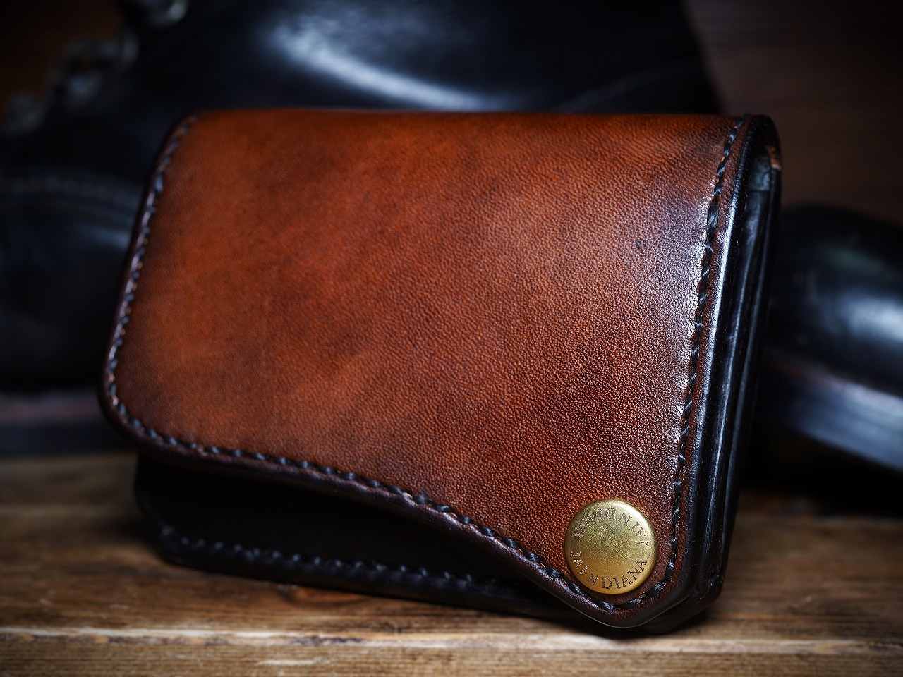 コンパクトで独創的クールなフォルムを手縫いで構築したサドルレザーウォレット。