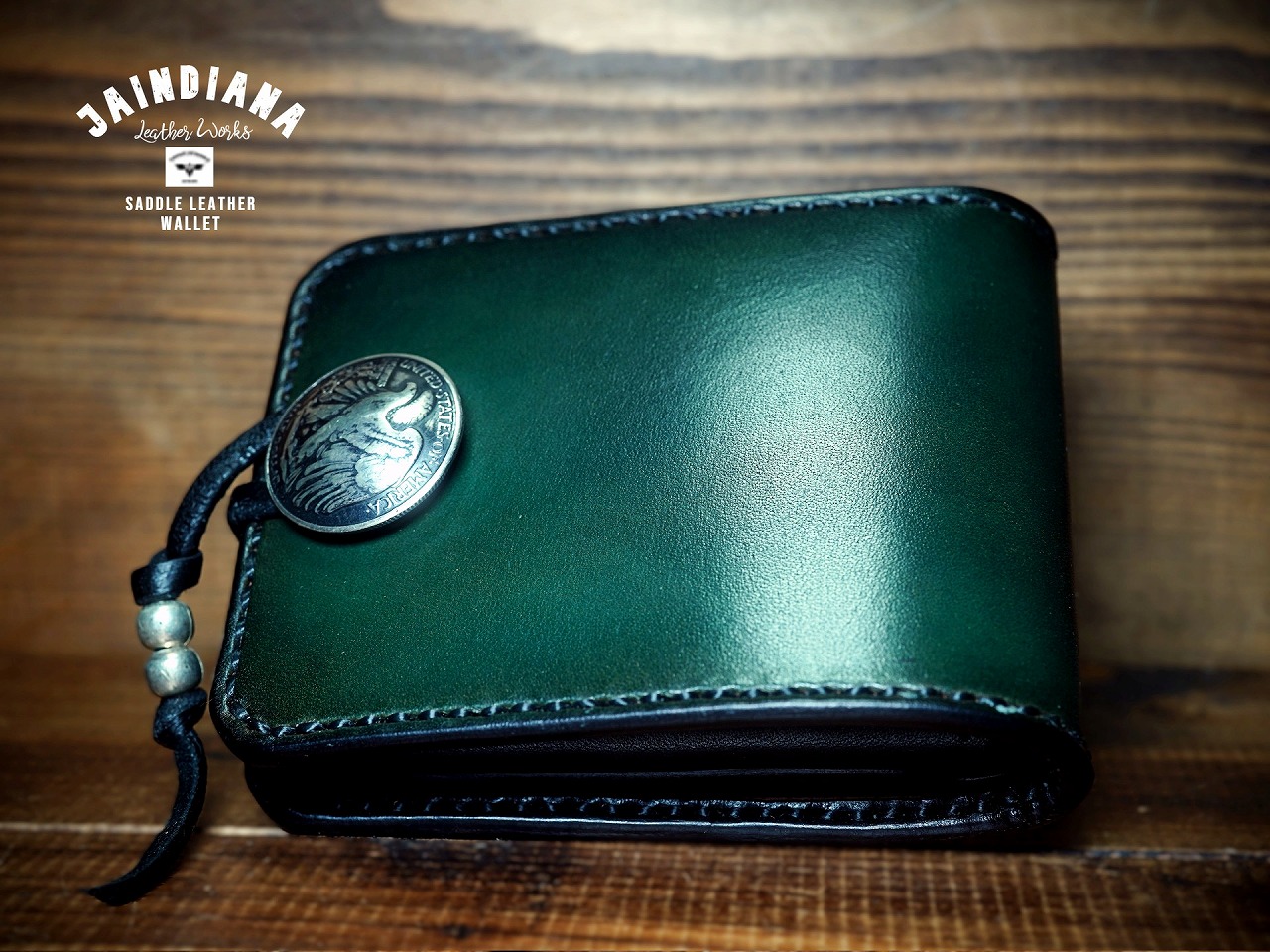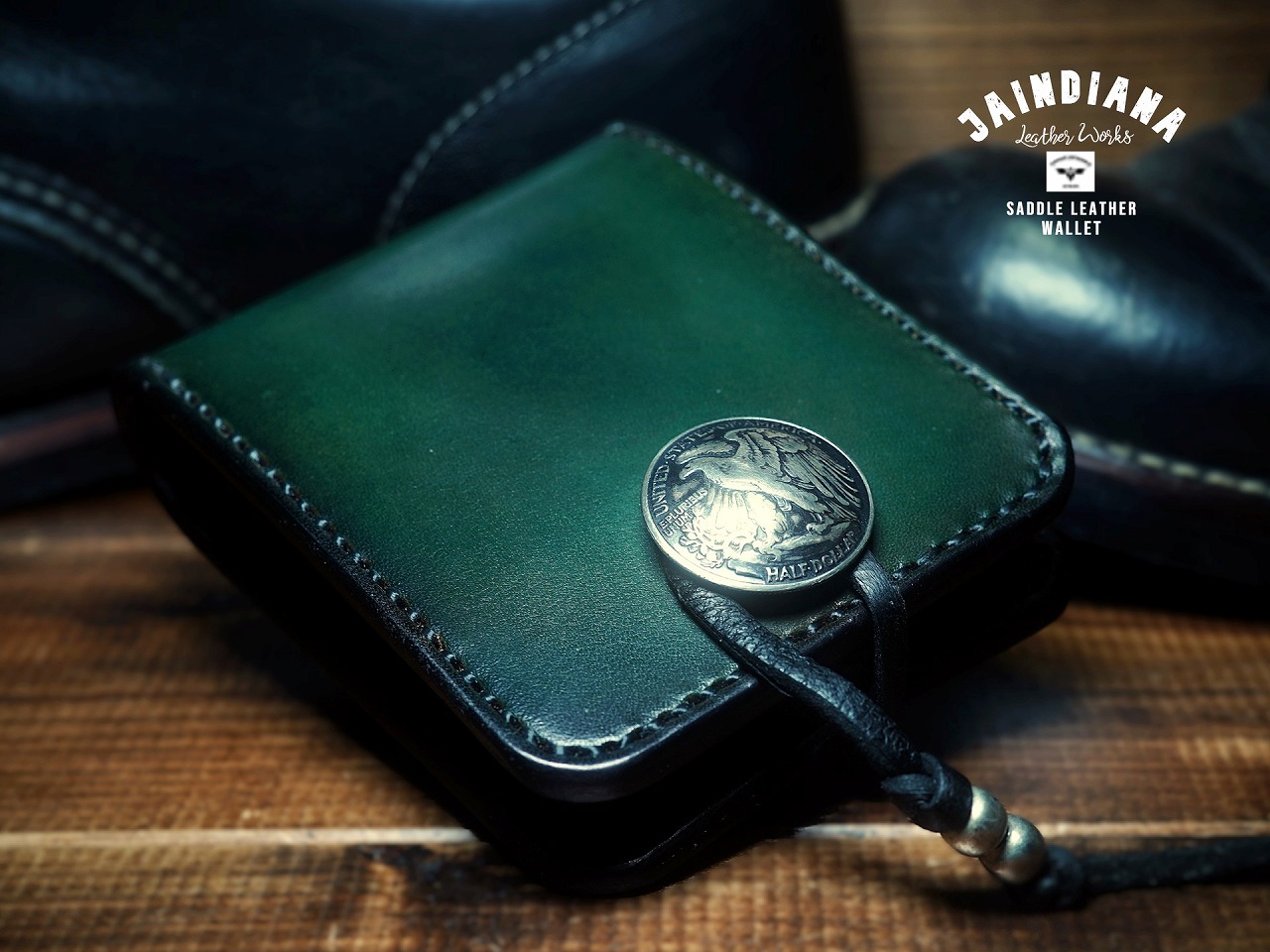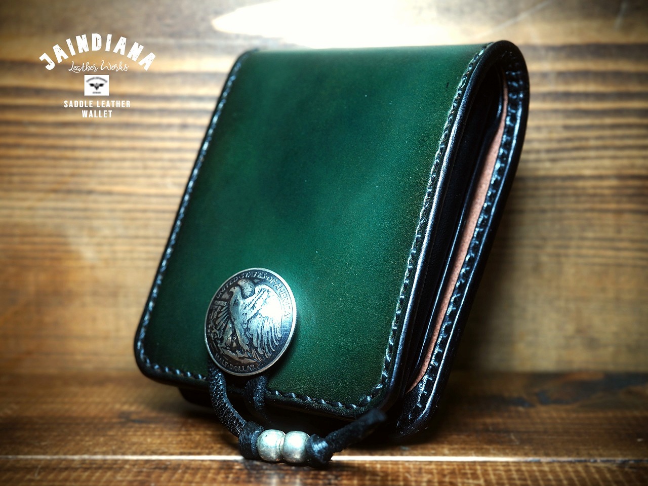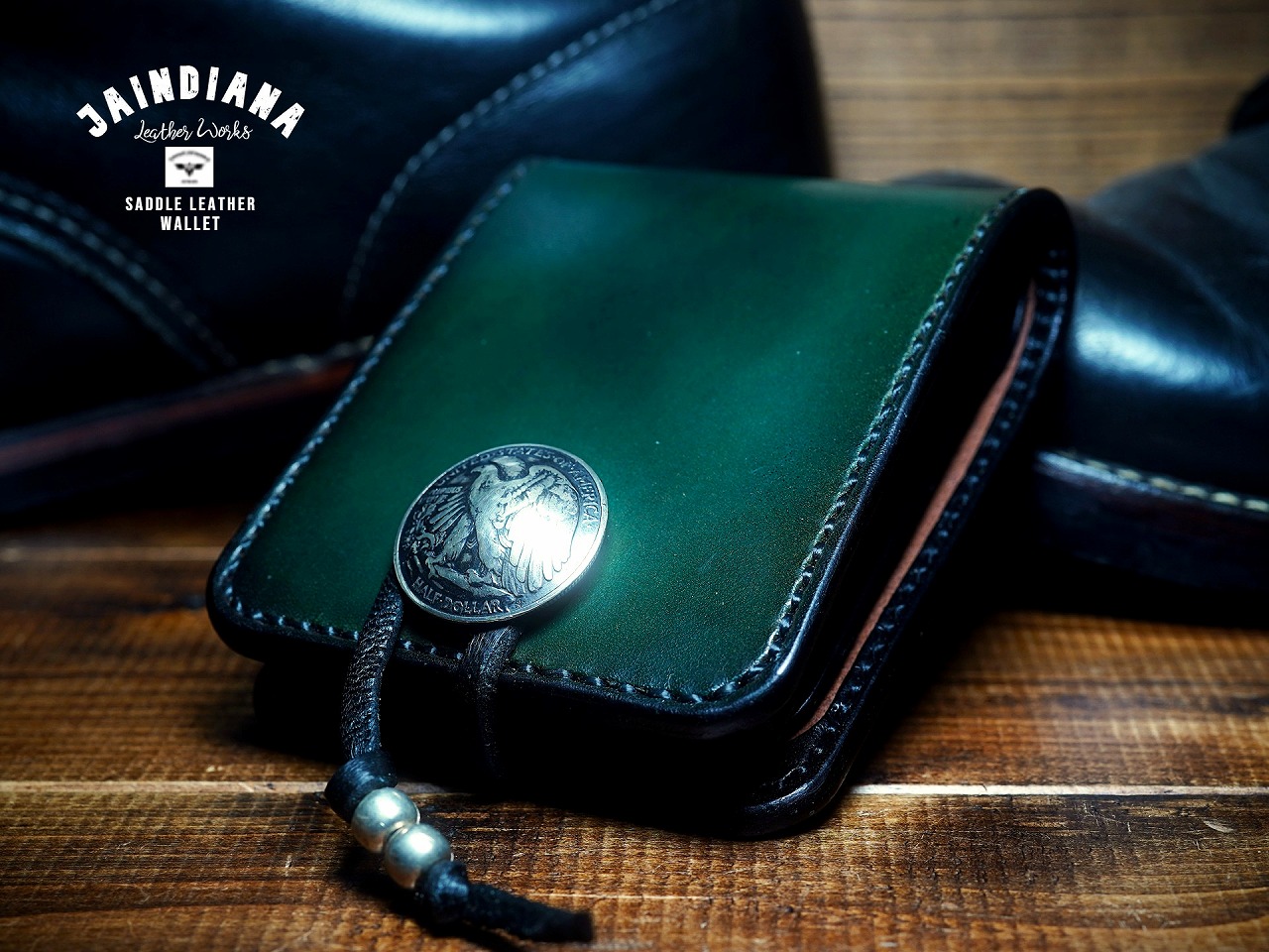 イーグルのシルバーコンチョがそのビンテージな深緑に崇高な命を吹き込み、更に昇華したハーフウォレット。