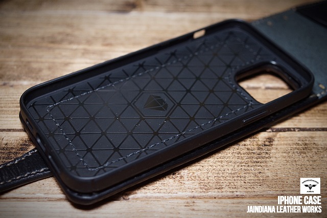 iPhone収納部はTPUケースを縫い付けてありますので操作性は抜群です。