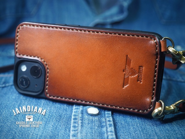 TPUケースの背面に手染めのサドルレザーを縫い付け、ビンテージな本物の革の武骨さを合わせ持ったニュースタイルのiPhone13ケース。