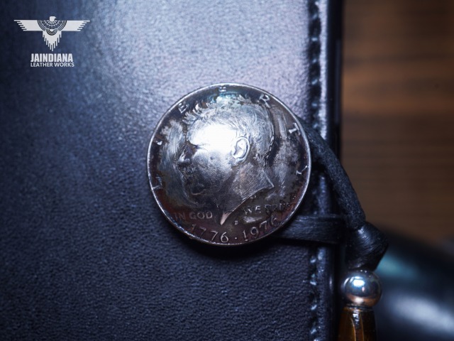 コンチョにはアメリカ50セントケネディーコイン(ニッケル素材)を使用しています。