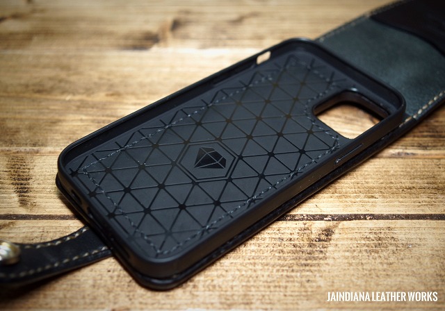 iPhone収納部はTPUケースを縫い付けてありますので操作性は抜群です。