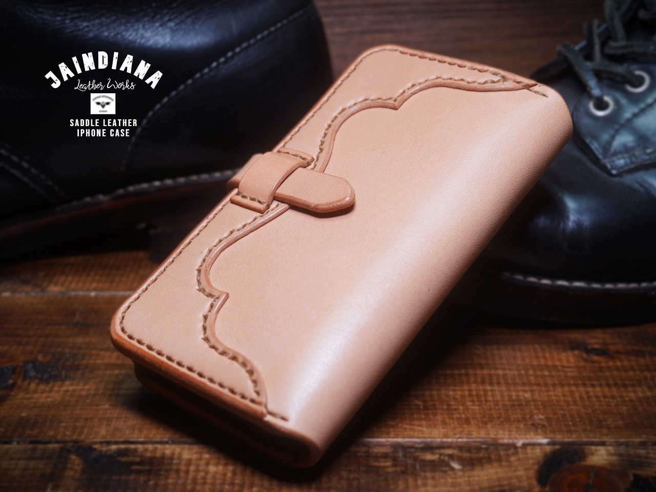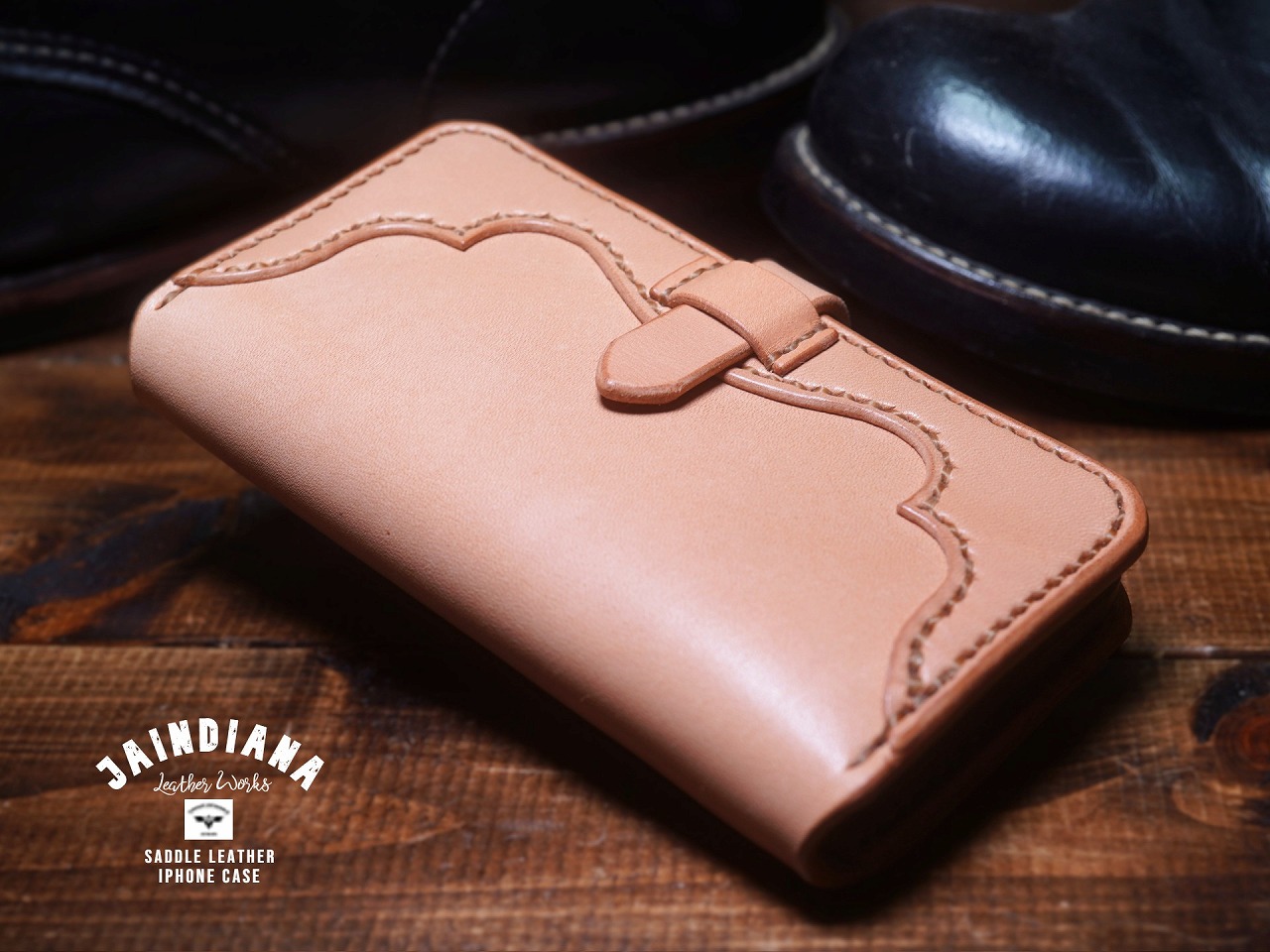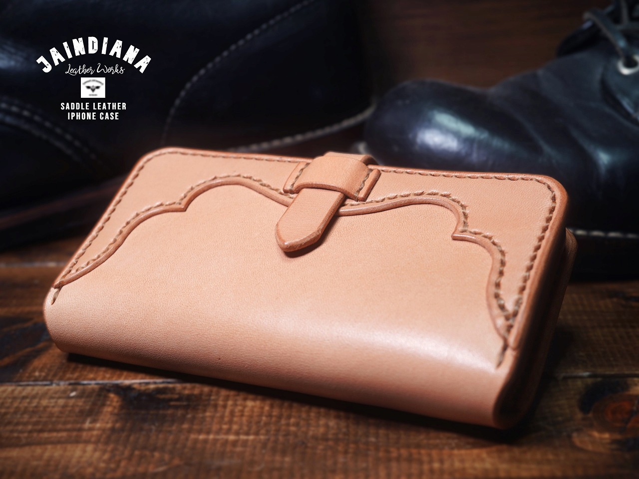 絶妙ラインのコーナー補強飾りが魅力のサドルレザーiPhoneケース。