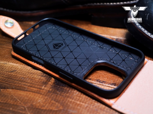 iPhone収納部はTPUケースを縫い付けてありますので操作性は抜群です。