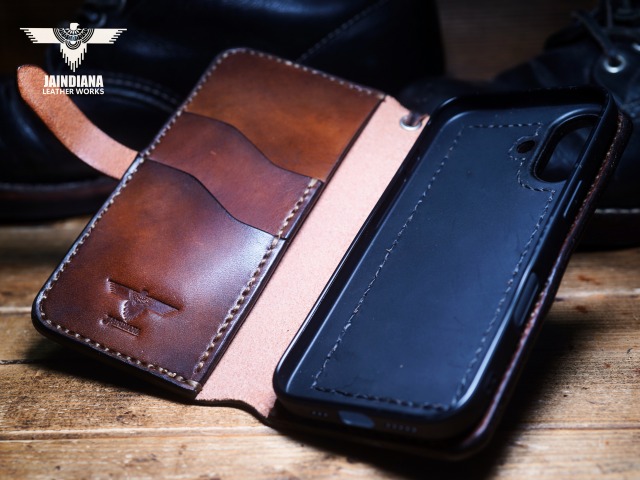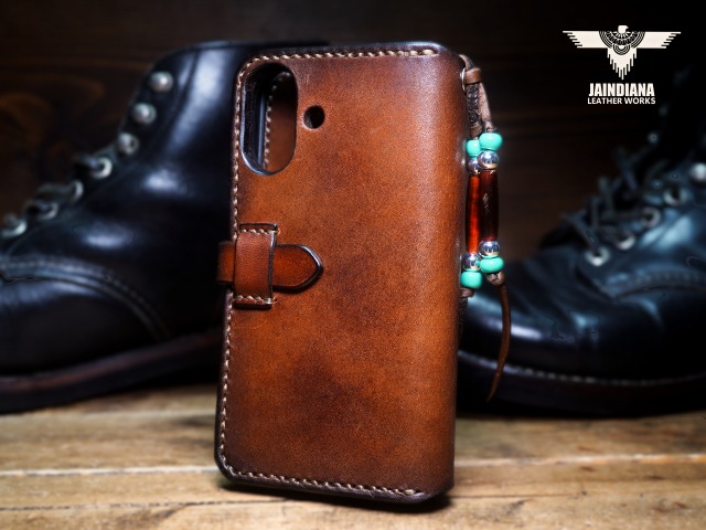 手染めでしか出せない無骨でネイティブでビンテージな風合いが、無駄の無いシンプルなデザインを決して無機質にさせないiPhoneケース。