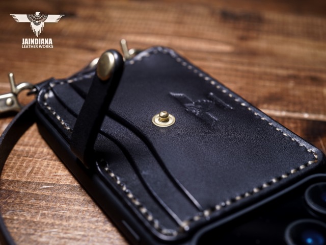 ホックには真鍮製ホックを使用。本物の革で作られたシンプルな革造形のiPhoneケースにさりげないアクセントを与えます。