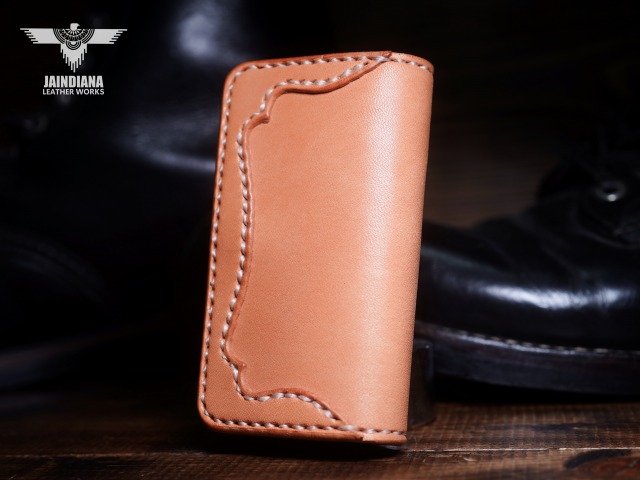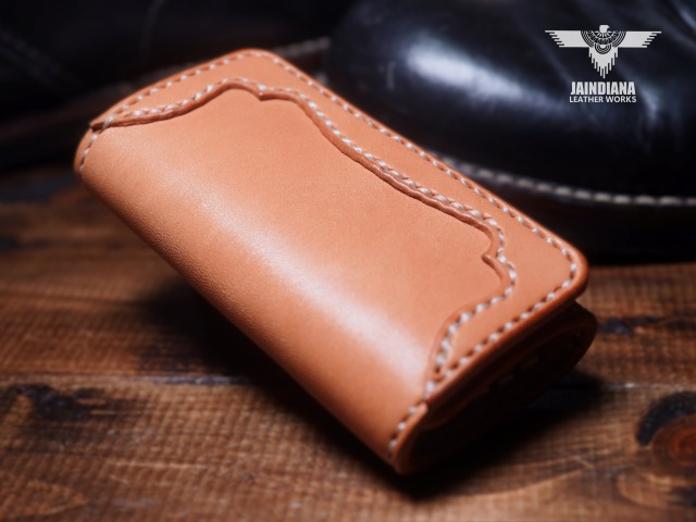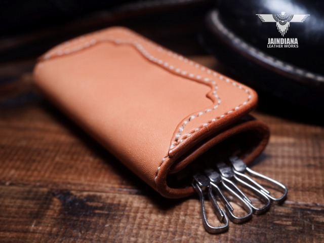 天然素材のナチュラルサドルレザーで構築されたキーケース。絶妙ラインのコーナー補強飾りを施し、無骨さとスタイリッシュさを合わせ持つ、本物の存在感漂うJAINDIANAのサドルレザーキーケース。