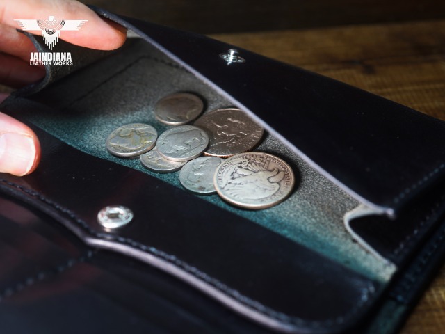 小銭入れは大容量で出し入れしやすく使いやすい構造です。