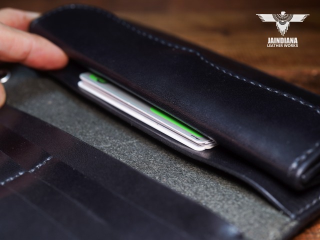カードイレサイドの札入れ部にはマチか付いていますので、札を分けて収納できて便利です。