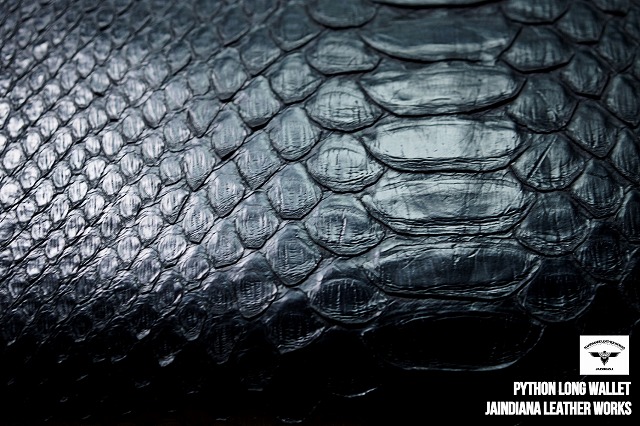 腹の鱗をウォレット中央に大胆に配置したパイソンロングウォレット。