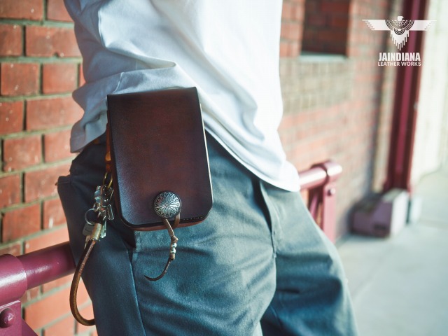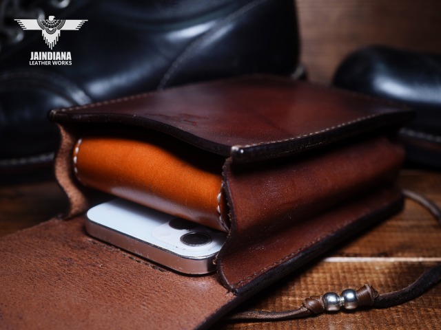 スマートフォン収納に最適な、重厚感あるサドルレザーメディスンバッグ。