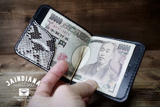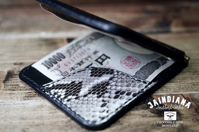 高級感あふれる上級野生を放つクロコダイルスキンをコンパクトサイズに落とし込んだマネークリップ。内側に配置されたパイソンがクールでハードなかっこ良さを更に増幅させるJAINDIANAの傑作マネークリップ。