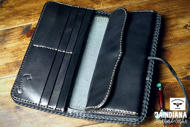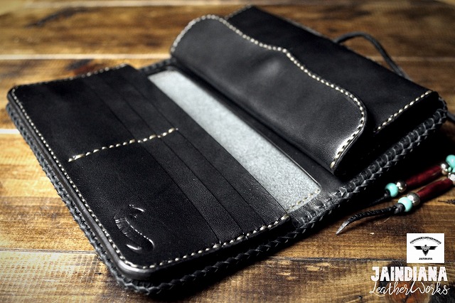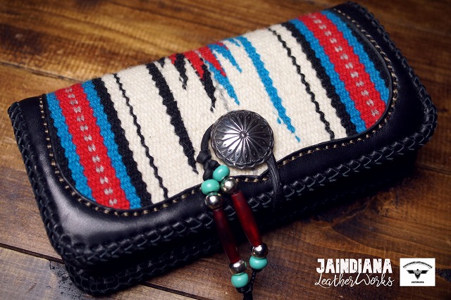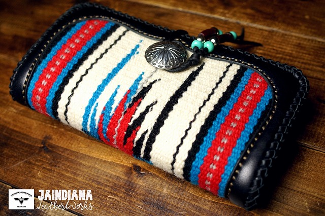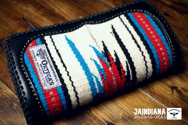 唯一無二のオルテガラグを重厚感あるブラックサドルレザーにインレイした、ネイティブな魅力が溢れるロングウォレット。