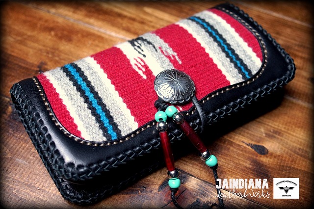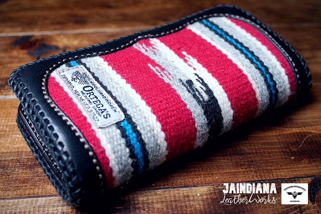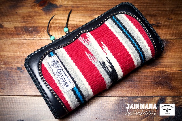 唯一無二のオルテガラグを重厚感あるブラックサドルレザーにインレイした、ネイティブな魅力が溢れるロングウォレット。