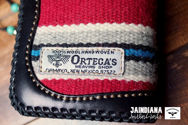ウォレットの外周は丈夫なカンガルーレースを使用。天然素材の質感が、オルテガウォレットのネイティブな魅力を更に増幅させます。