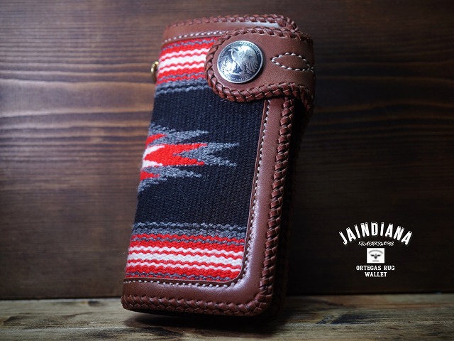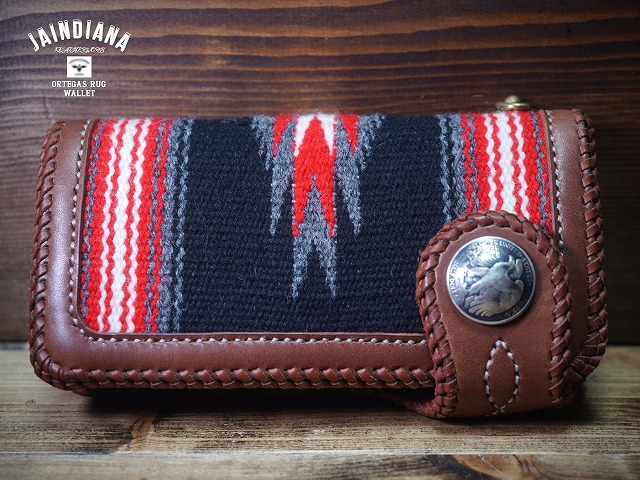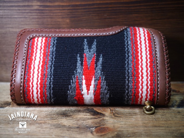 唯一無二のオルテガラグを重厚感あるブラックサドルレザーにインレイした、ネイティブな魅力が溢れるロングウォレット。