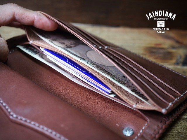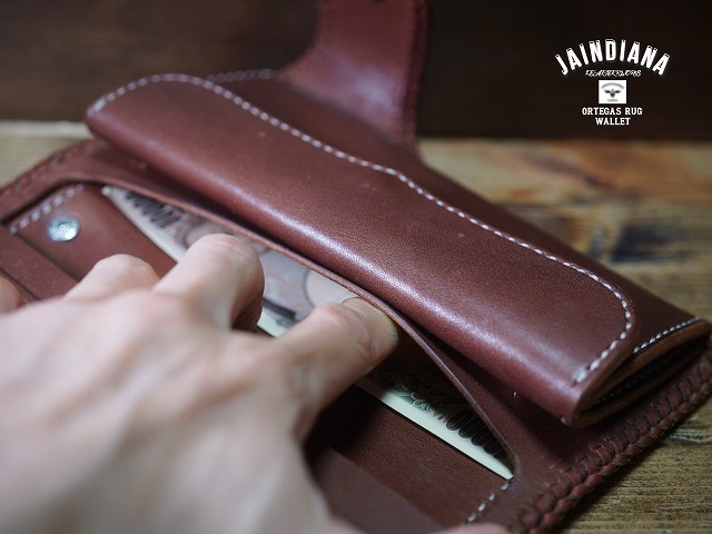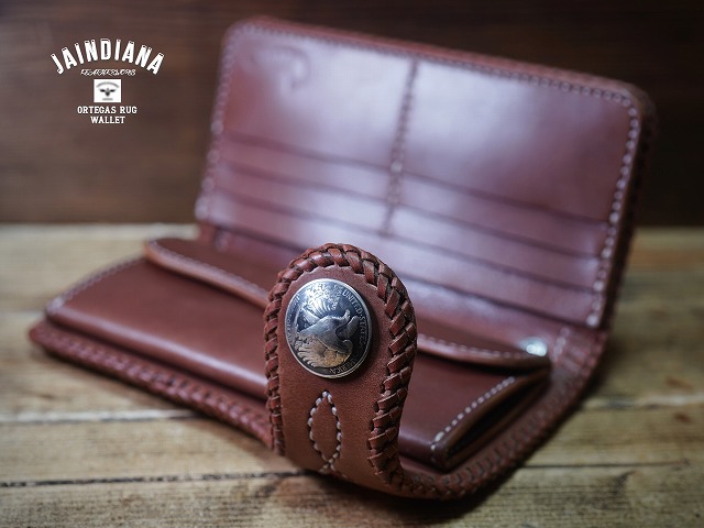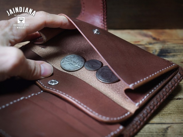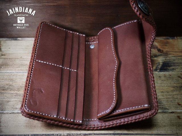 ウォレットの外周は丈夫なカンガルーレースを使用。天然素材の質感が、オルテガウォレットのネイティブな魅力を更に増幅させます。