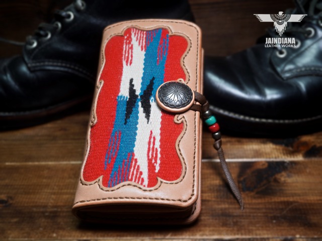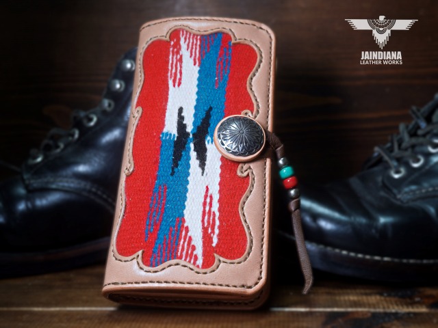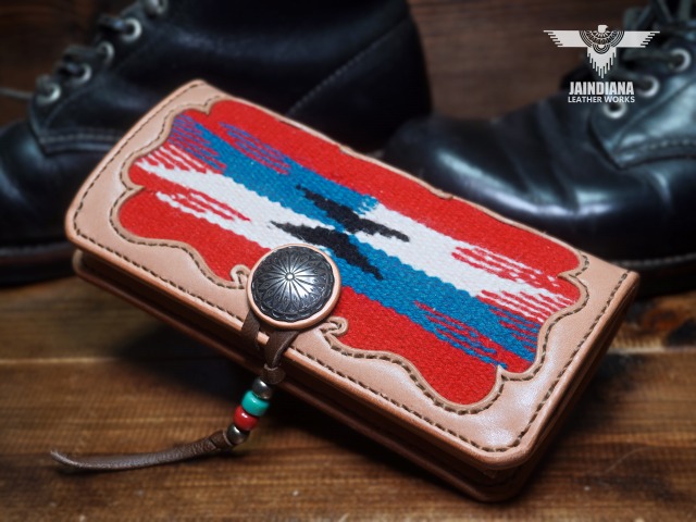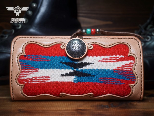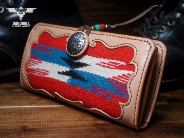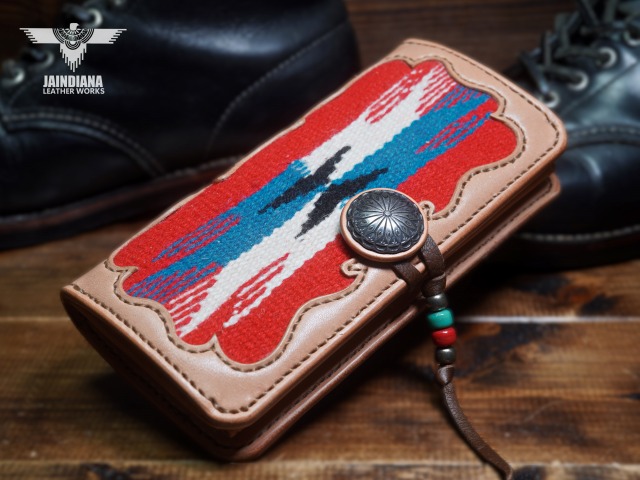 唯一無二のオルテガラグをナチュラルサドルレザーにインレイした、ネイティブな魅力が溢れるロングウォレット。