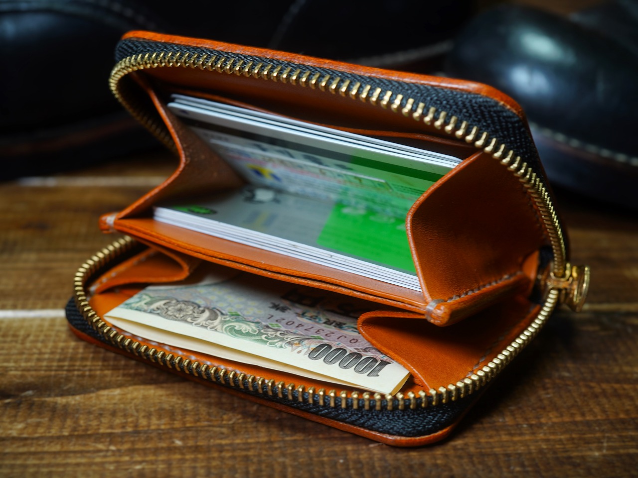 絶妙なキャメルカラーが、フレッシュな若々しい衝動と、渋さのある風格を同時に合わせ持つ栃木サドルレザーを使用したラウンドファスナーウォレット。