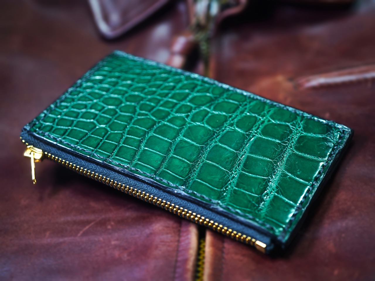 神秘的で生命力溢れるクロコダイルを屈強な手縫いで構築したこのウォレットのワイルドで上品な存在感を味わって頂きたいです。