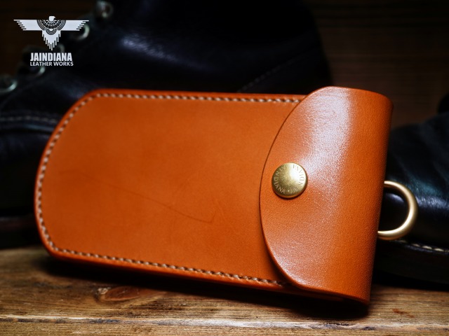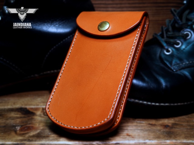スマートフォン収納に特化した、重厚感あるサドルレザースマートフォンケース。