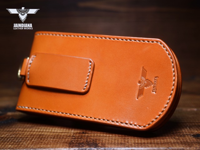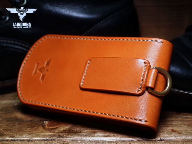 全ての革好きを魅了する絶妙なキャメルカラーのサドルレザーを一針一針手縫いで仕上げたスマートフォンケース。ワイルドなカッコ良さと、がっちりベルトに装着できる便利さが魅力の使う者に寄り添うスマホケース。