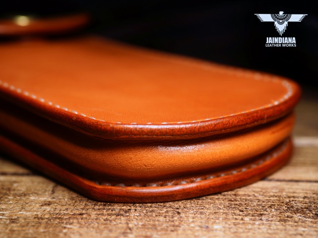 革と手縫いの相性は抜群で、財布として構成された革を骨のように屈強にささえ、血液のように脈々とウォレットラインを流れます。